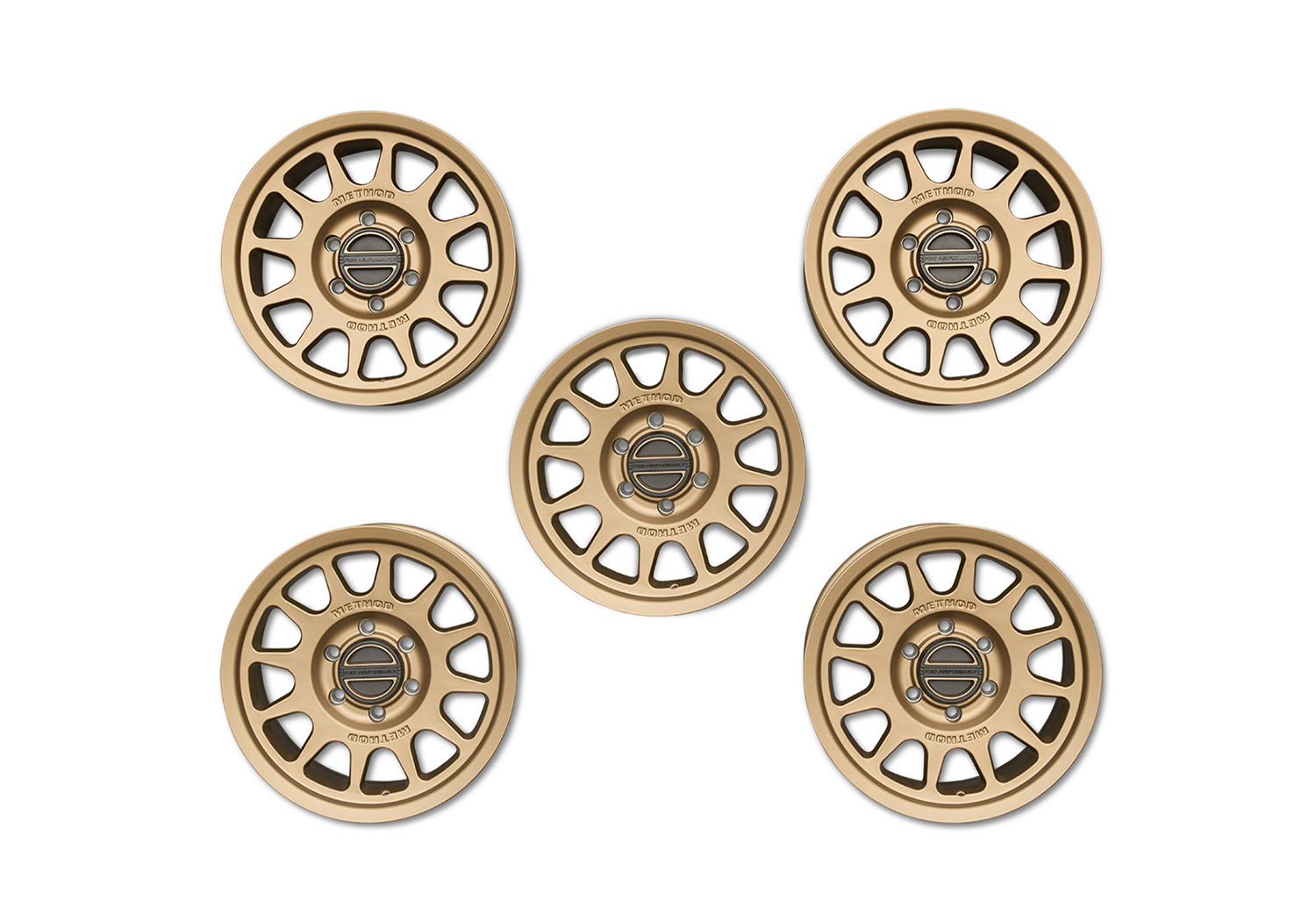 - 5 Snap-in center caps with embossed Ford Performance / METHOD Bead Grip® logo