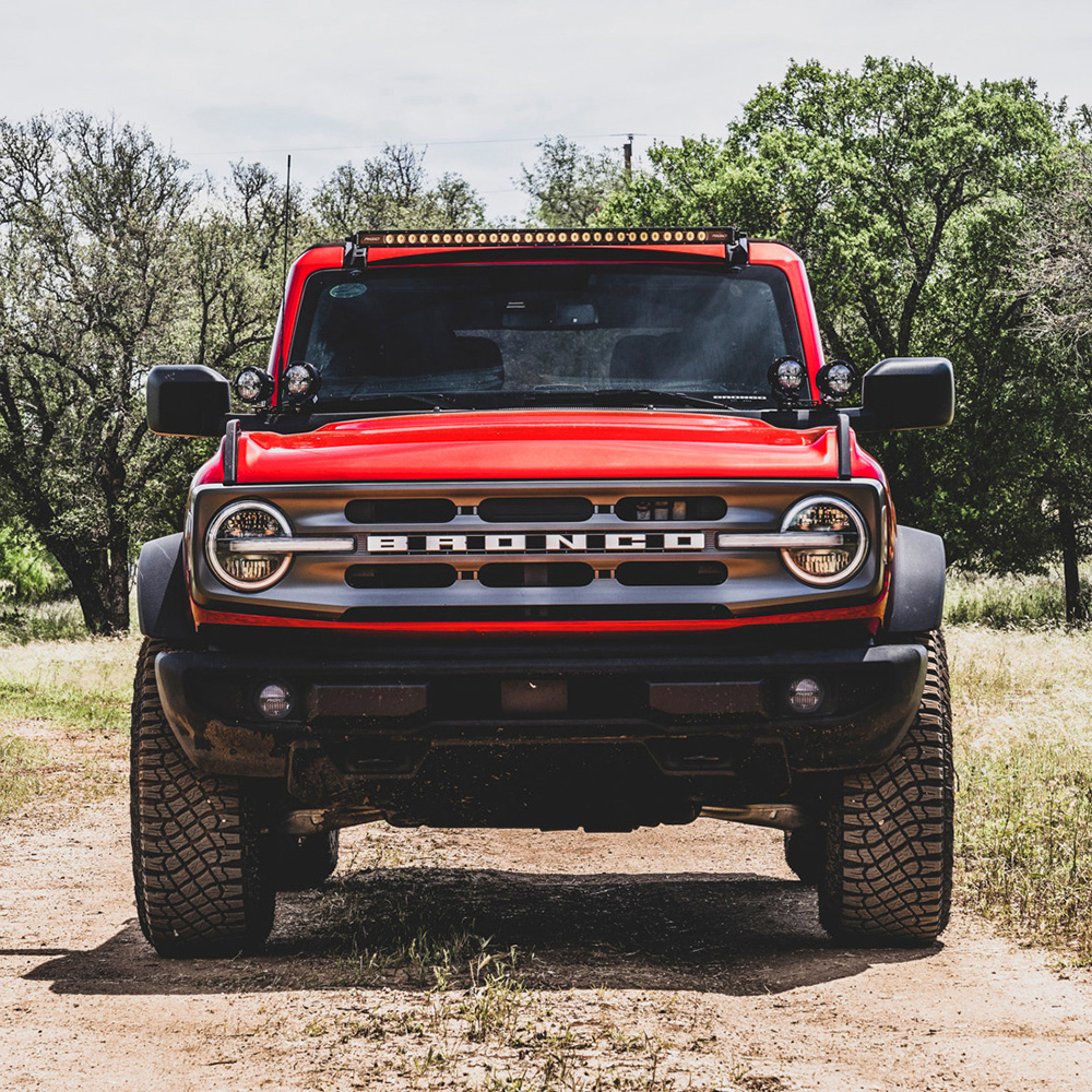 The Kit allows you to change your factory fog light assemblies to use RIGID’s 360-Series 4" Round Lamps in your Bronco's OEM fog light locations. This kit gives you everything you need to mount the lights for a clean, “from-the-factory” look. Made from high quality components, these complete assemblies are plug-and-play and completely reversible with no cutting or splicing. Utilizing factory modified bezels and RIGID's 360-Series lights and harness adapters, these assemblies are sure to deliver an easy-to-install, high quality off-road light package.