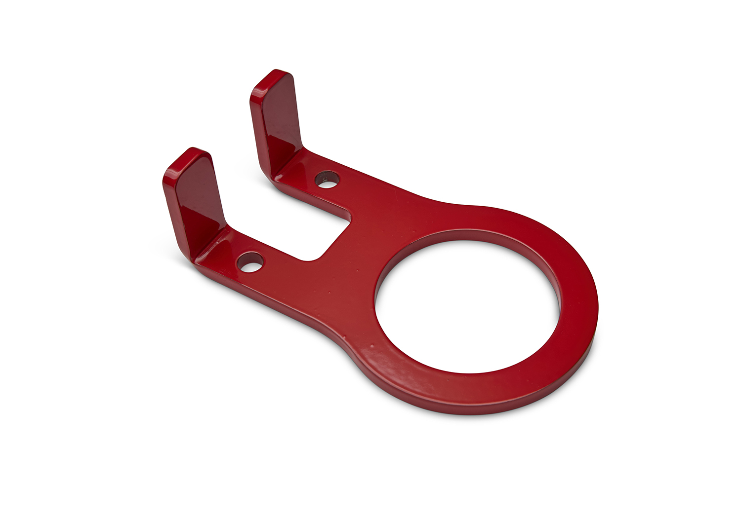 - Bright red powder coat finish