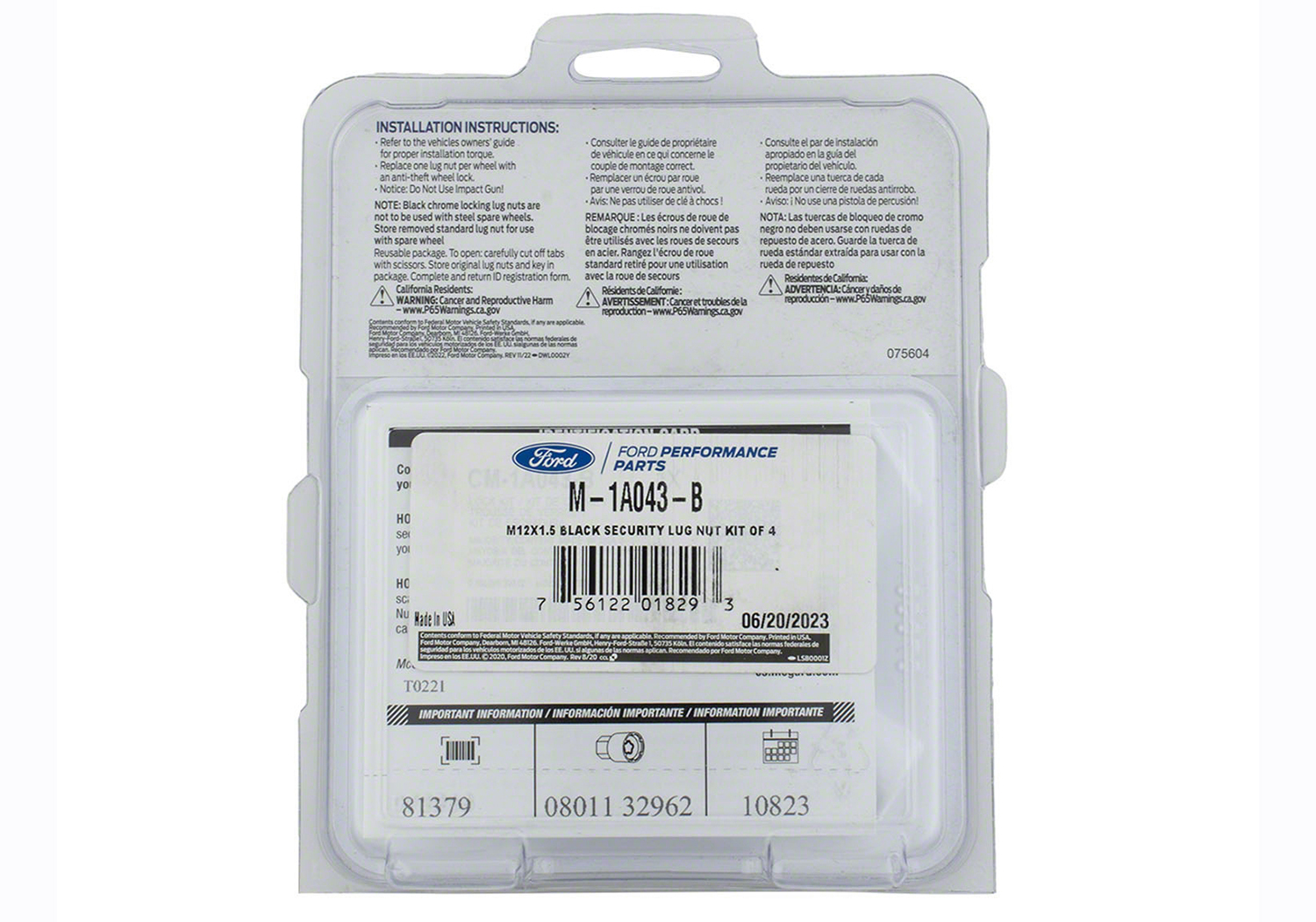 - Our M-1A043-B5 is the same kit that includes an additional security lug nut for use on the Bronco rear mounted spare wheel and tire