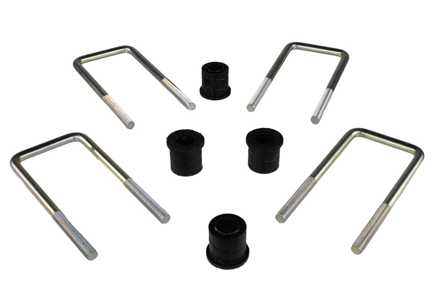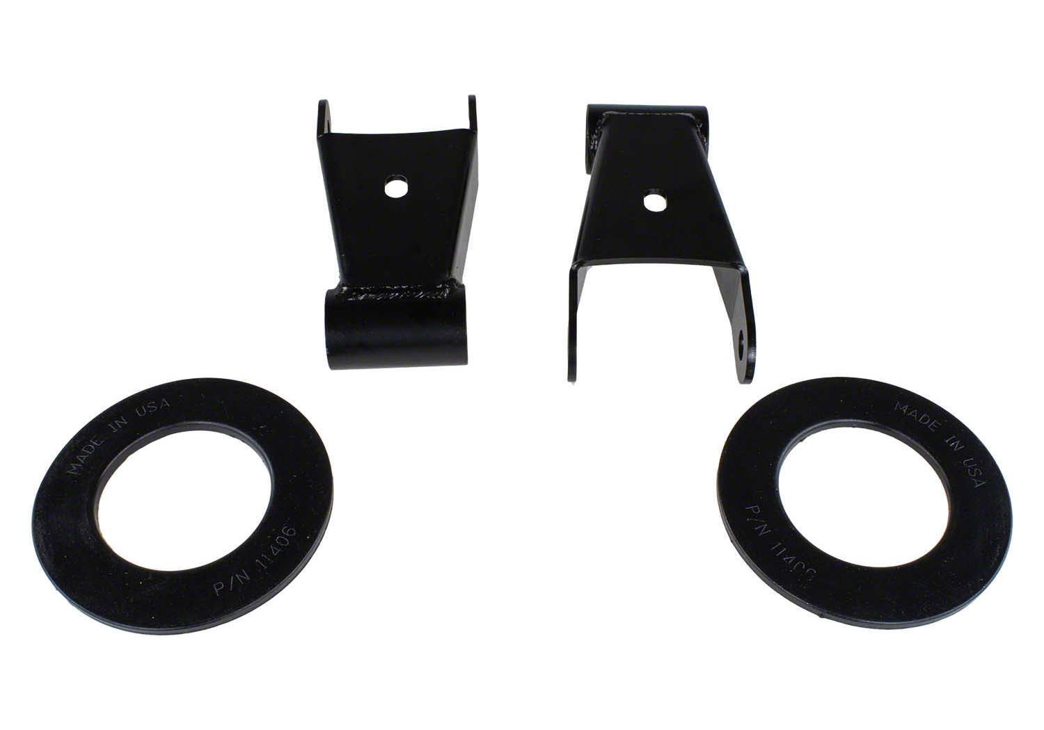 F-150 Lowering Kit reduces the front ride height by approximately 1.5" and the rear ride height approximately 2.5" to provide a lower and level sport truck stance.