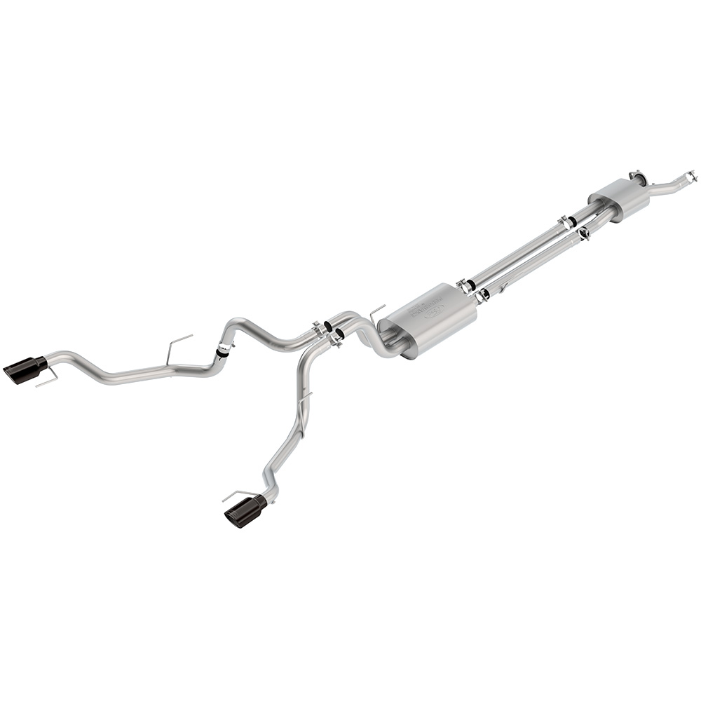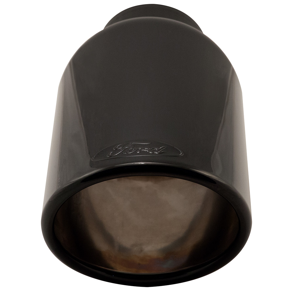 - Dual rear exit with 4.5” black chrome plated stainless exhaust tips with embossed Ford logo
