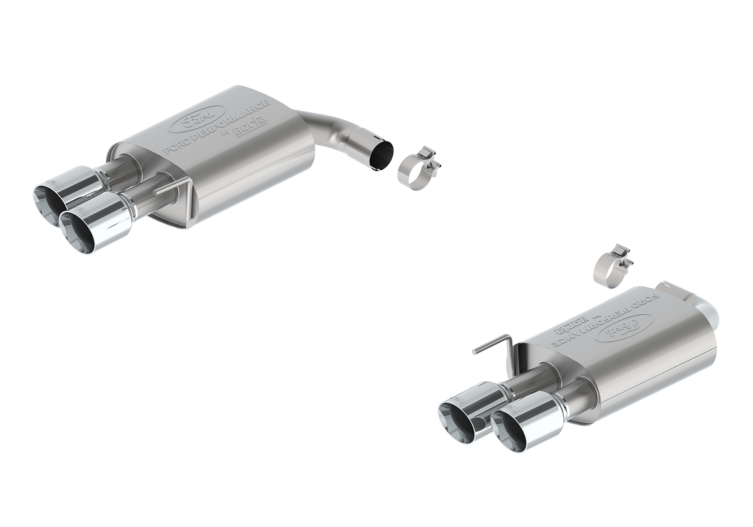 - Factory exhaust pipe must be cut to install clamp on Ford Performance axle-back mufflers
