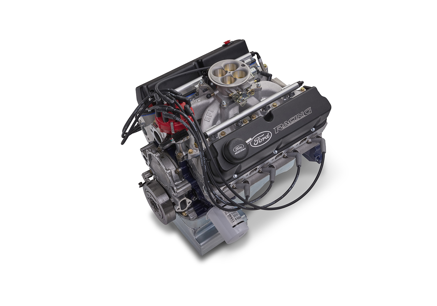 The Ford Performance X2347 Crate Engine is now available with fuel injection!!! The most popular crate engine size just got better and easier thanks to the Engineers at Ford Performance. The engine features Edelbrock® Pro-Flo 4 EFI. The proven 347 stroker combination has been optimized for street cruising with a perfectly matched cam, cylinder head, and fuel injection combination that runs on pump gas. It takes the guesswork and installation issues out of the way with a complete fuel injection and distributor package that has been developed and tested by Ford Performance Engineers. To dress out the X2347D, The Ford Performance Engineers spec’d parts from the best in the aftermarket like Edelbrock® and MSD®.