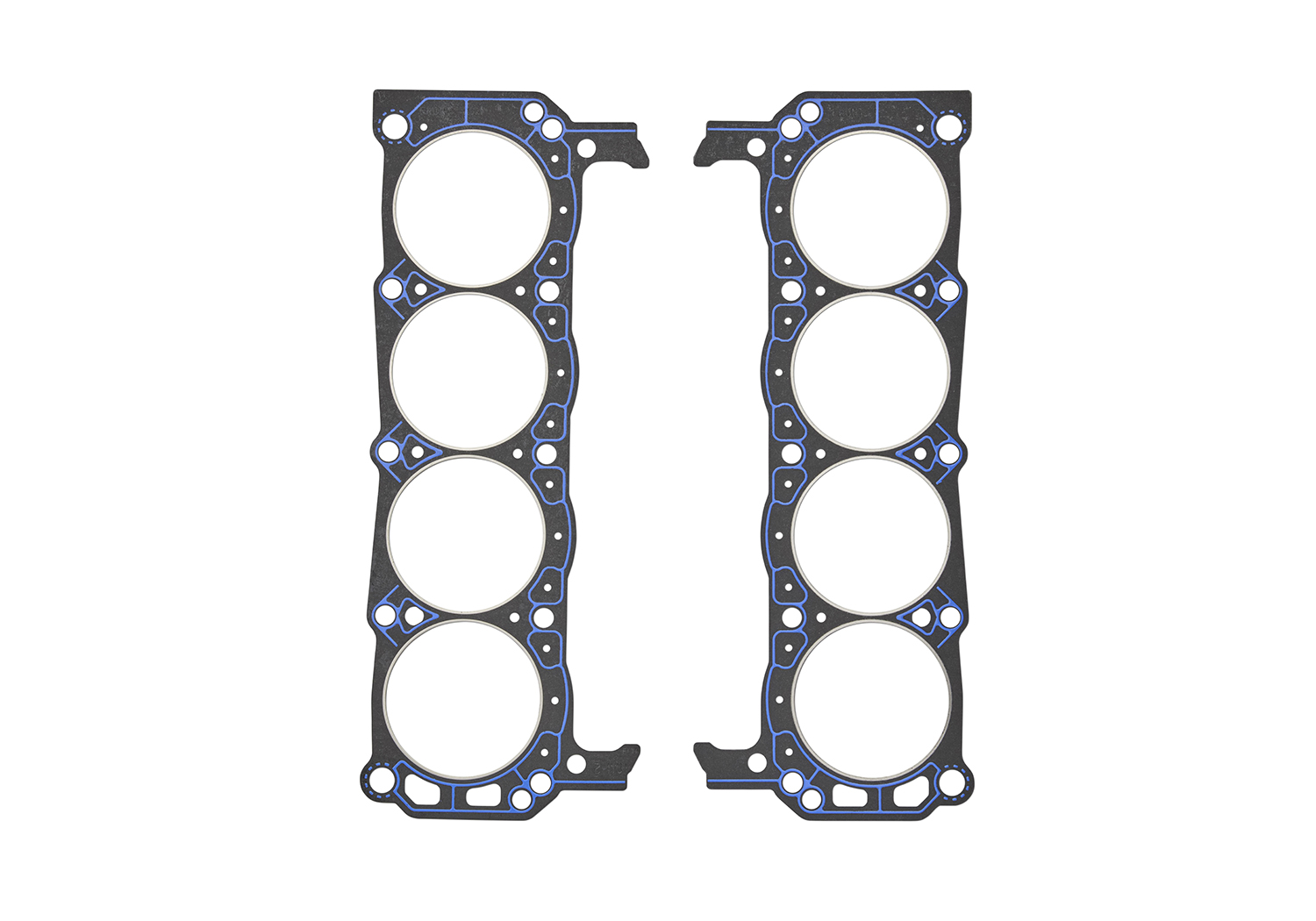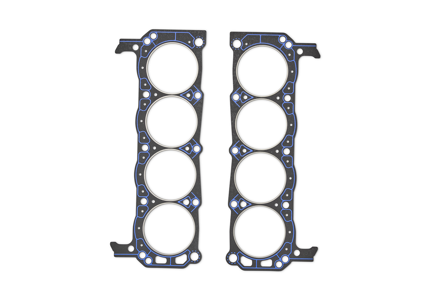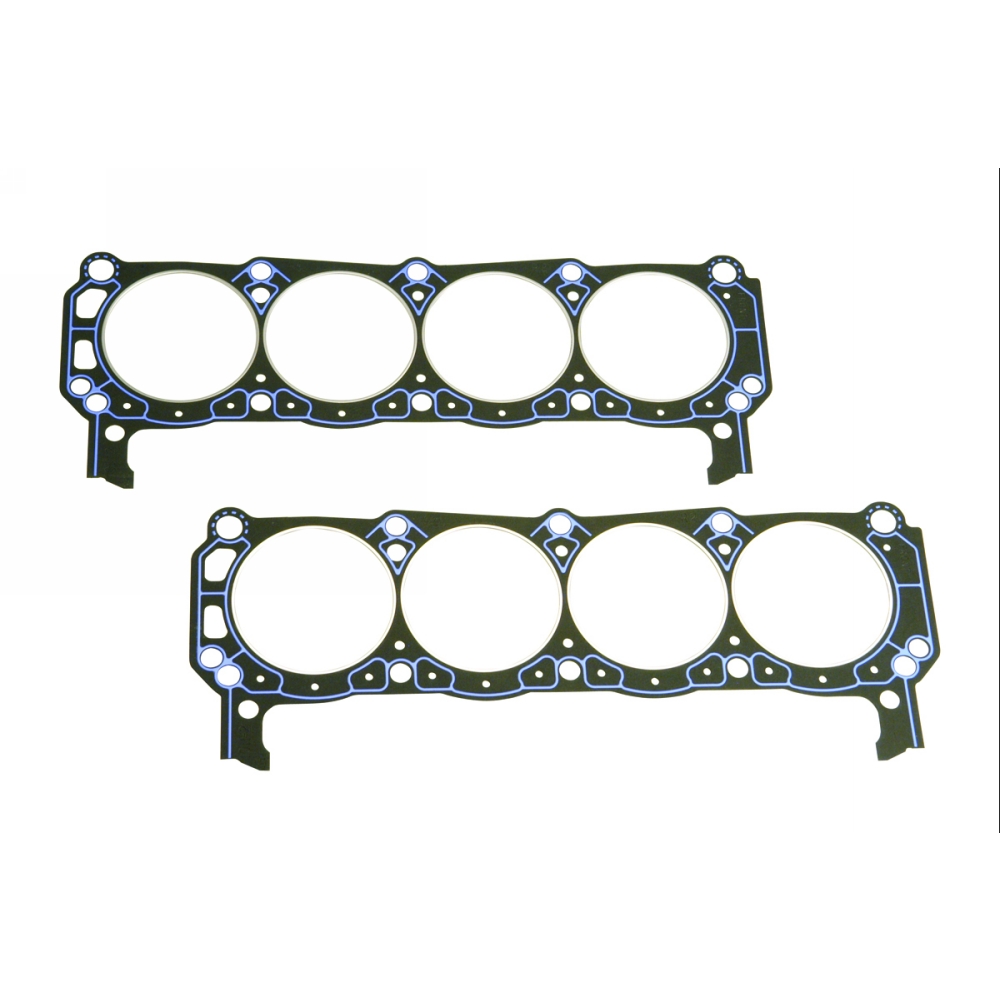 Big Bore 351 Ford Performance Blocks | 4.125" | 4.160" | 0.040" | 9.1cc | 4.125" overbore "competition" gasket. Same as gasket (M-6051-D331) except designed for Ford Performance blocks with larger 4.125" overbore. Bore flange valve pockets have been added to unshroud intake and exhaust valves. Set includes unique right- and left-hand gaskets! |