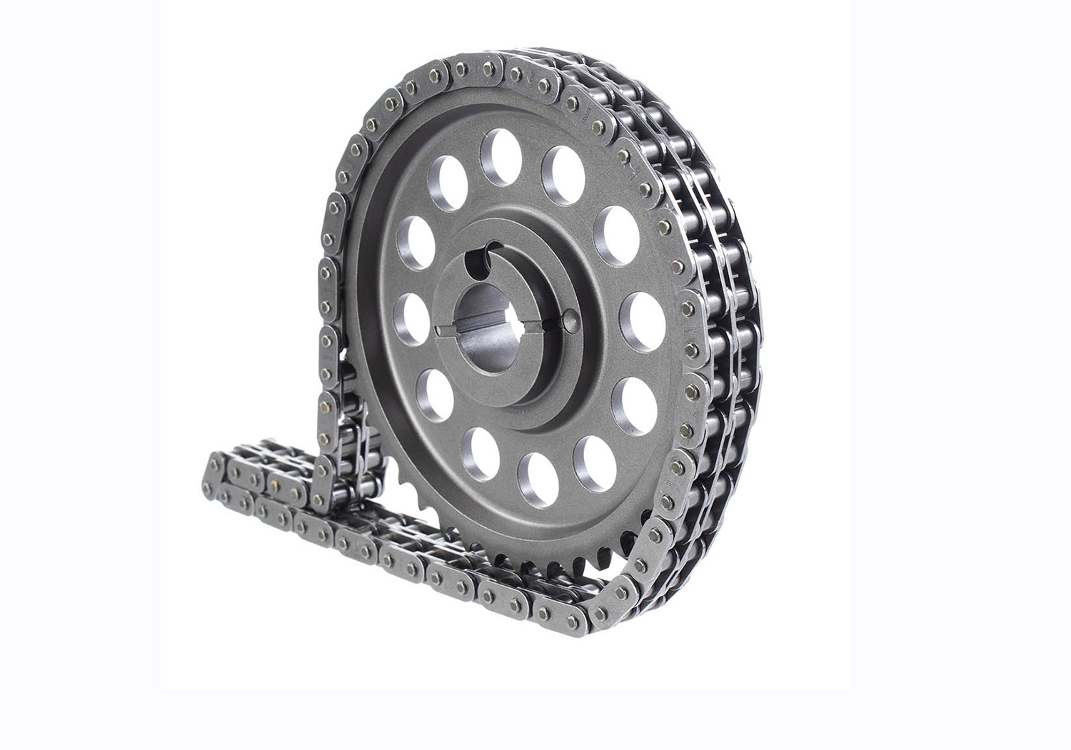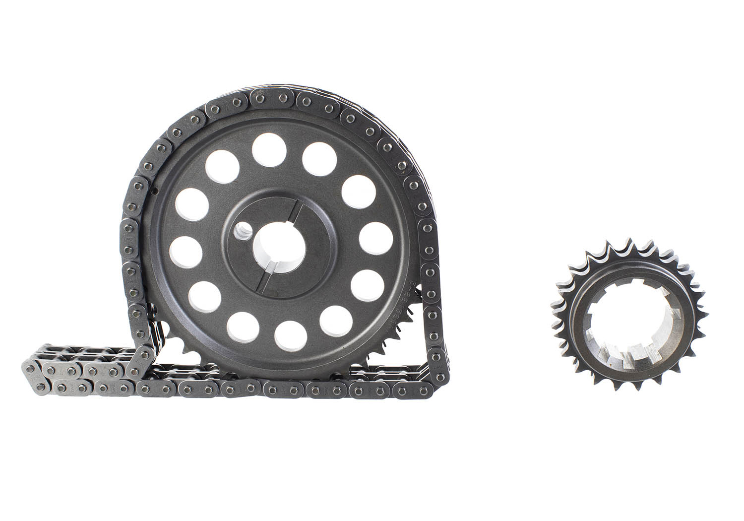 - Cam sprocket is made from steel. Crank sprocket is made from induction-hardened, billet steel