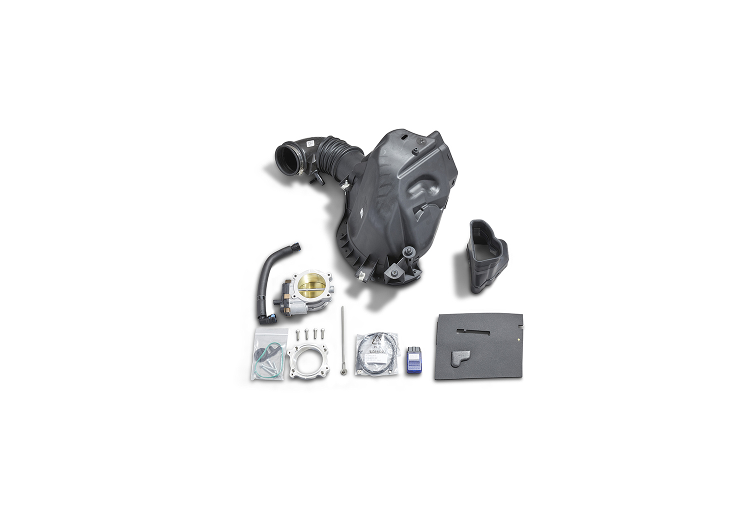Includes GT350 cold air intake with 87mm throttle body and exclusive intake adapter (hardware available separately without calibration as part number M-9603-M50)
